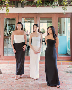 Features: Hidden elastic at waistline, Straight Cut Skirt with slightly bias cut at the back for you to flaunt that cute butt, Maxi length, Centre back invisible zipper, Fully lined.