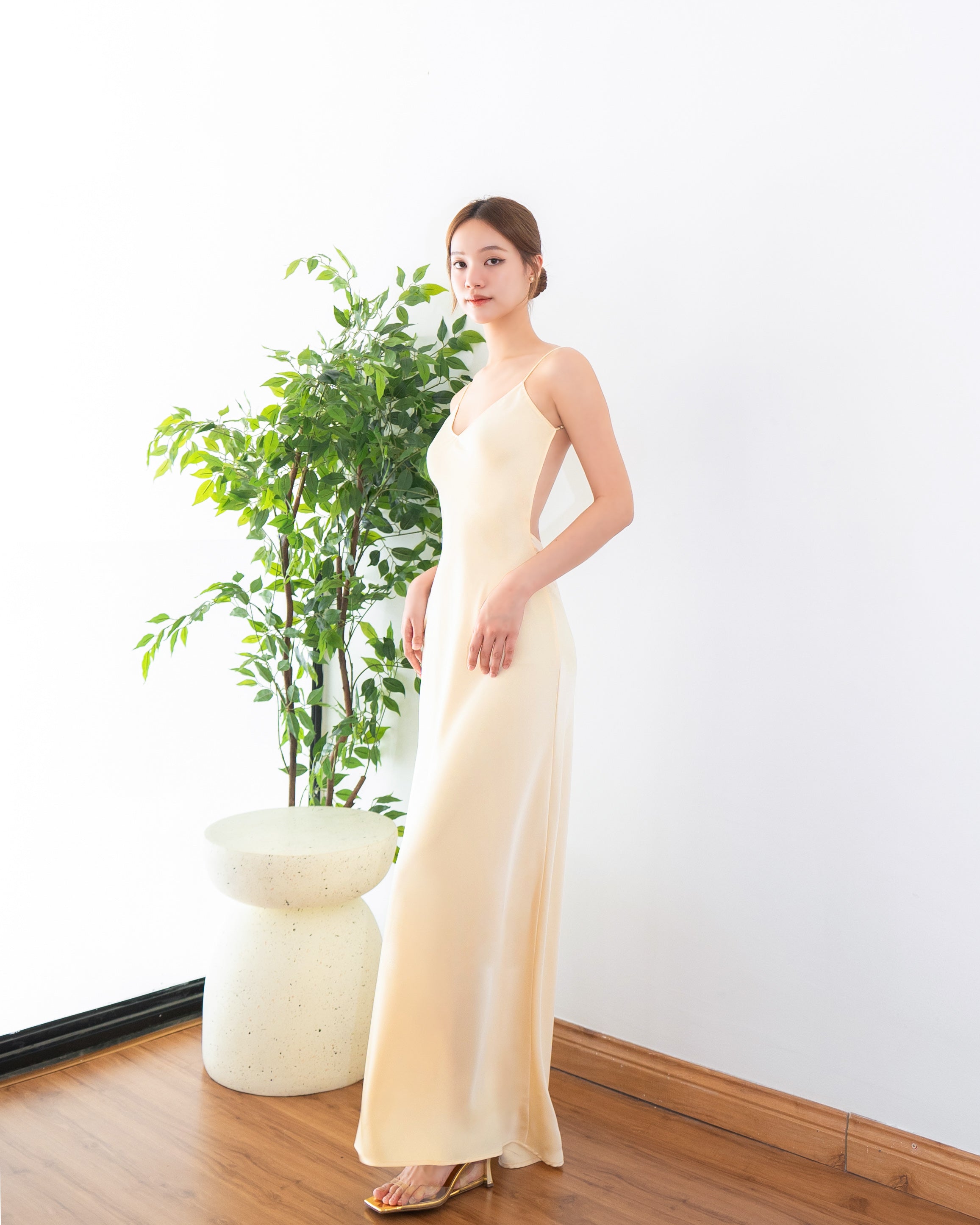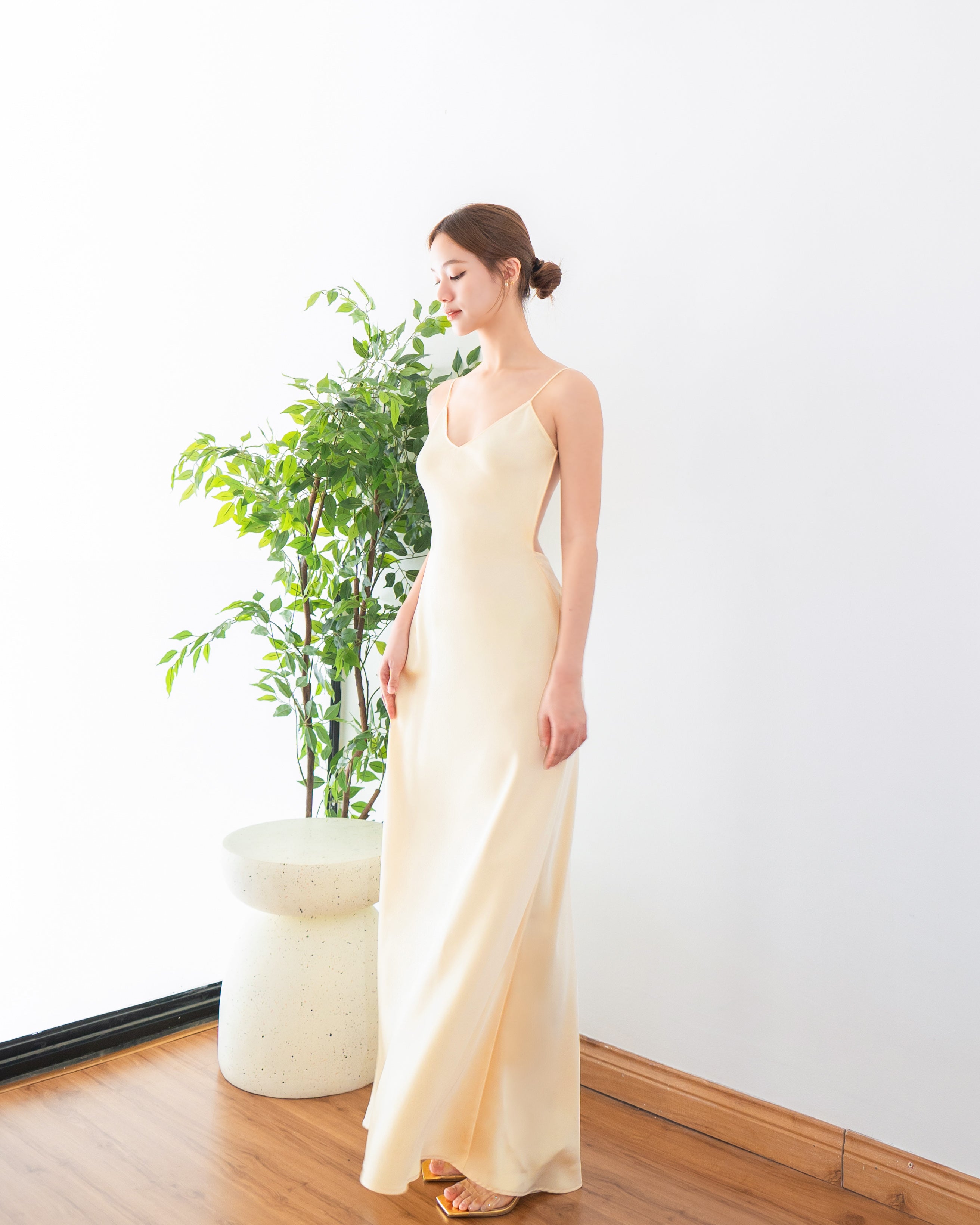 Features: V neckline, Adjustable Spaghetti Shoulder Straps, Bodice Skirt, Backless Maxi dress, Botton Centre back invisible zipper.